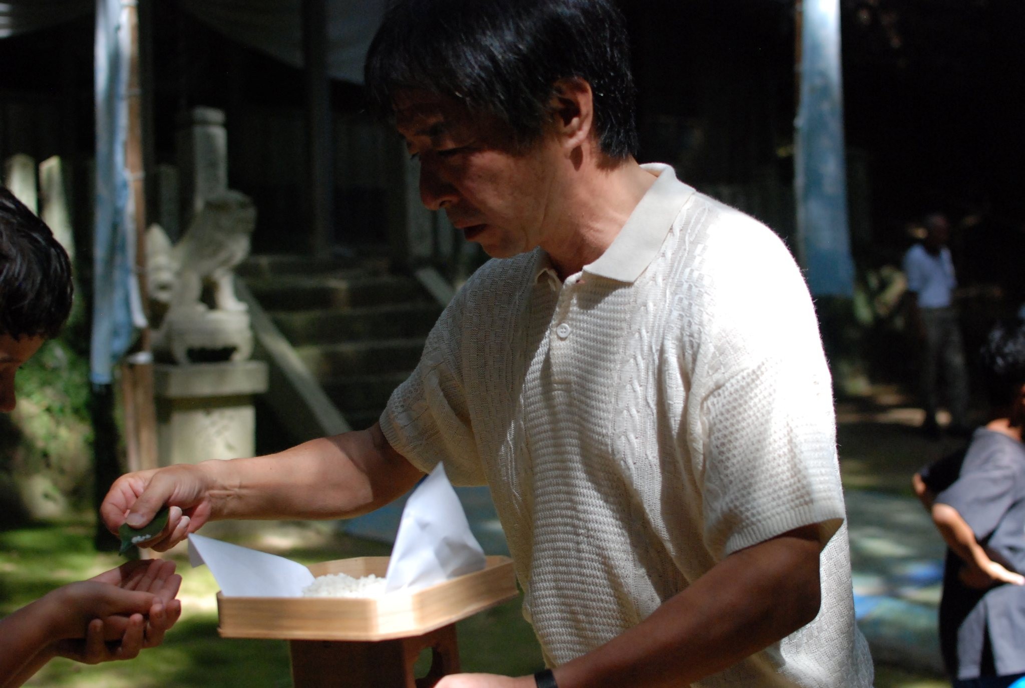Une fois par an, les habitants du village, hommes, femmes, vieillards et enfants, se réunissent pour une cérémonie, menée par le prêtre shinto de la ville avoisinante.
