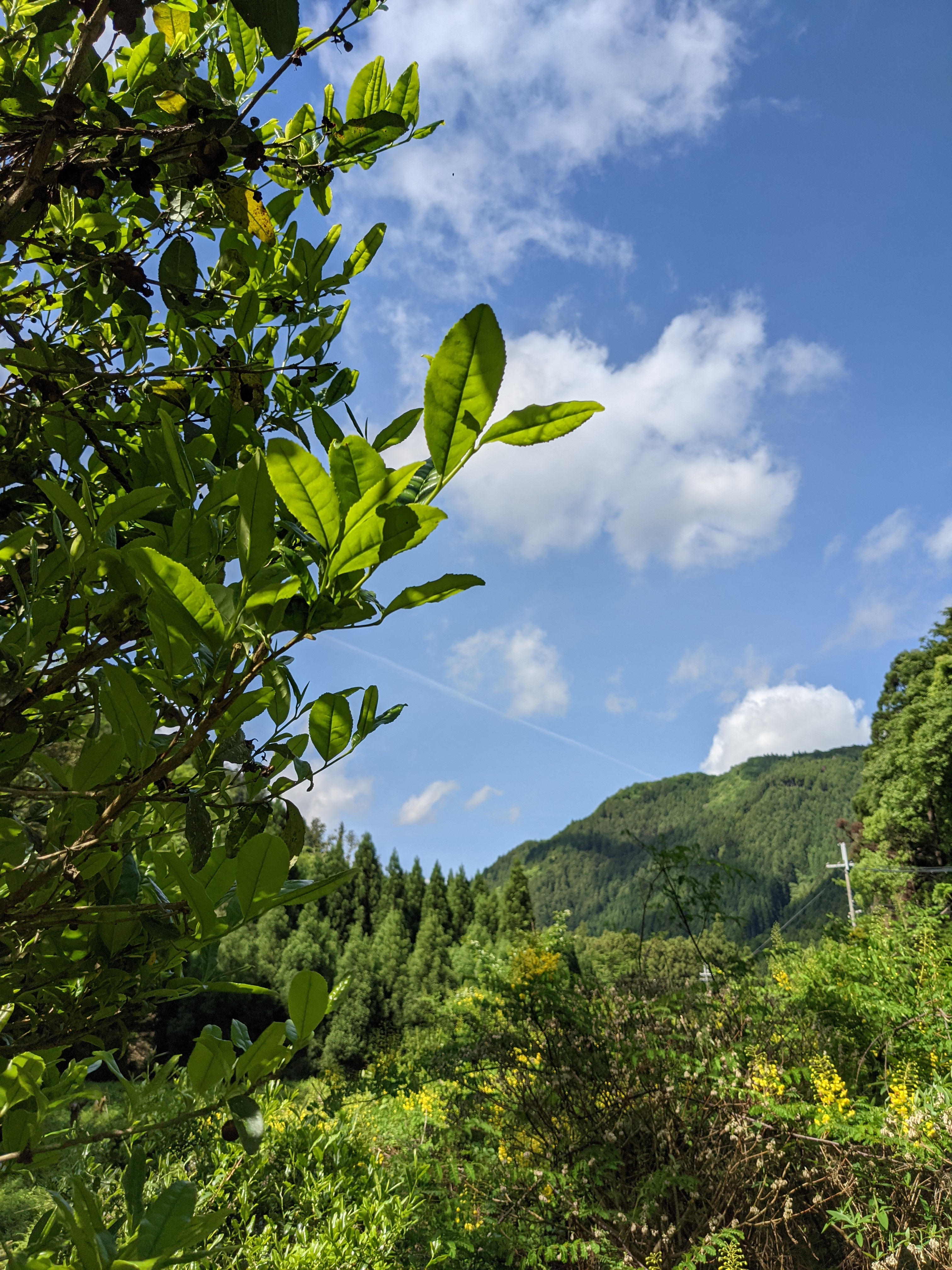 Sur la photo remarquer la trainée de condensation laissée par un avion. On dit hikoukigumo ‘nuage avion’ en Japonais. 飛行機雲 Ce qui est assez rare avec cette pandémie de connarovirus.