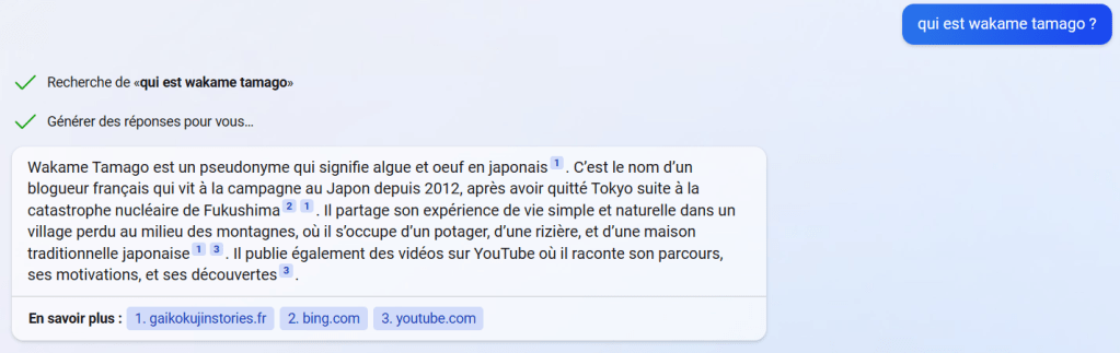 Aujourd’hui je demande à chatgpt de me renseigner sur wakame tamago (mon pseudo)