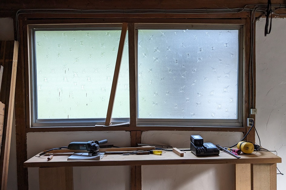 Ce que j’aurais voulu faire c’était retirer les cadres de fenêtre; les démonter, remplacer le verre translucide par un genre de plexiglass et puis les remettre en place. Cela aurait été le plus simple; mais c’est finalement impossible.