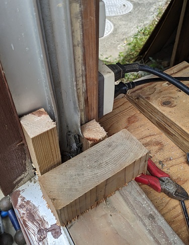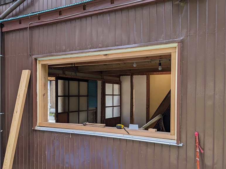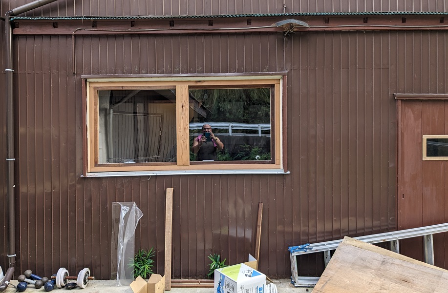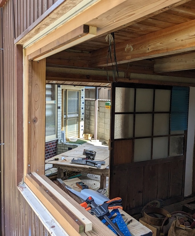 Samedi, je passe une partie de la journée à essayer de retirer les fenêtres (c’est à la japonaise, donc en fait c’est deux cadres de fenêtre qui coulissent librement), mais, le bâtiment a dû s’affaisser partiellement et le cadre de la fenêtre est déformé. Et donc il est impossible de retirer les cadres qui sont bloqués.