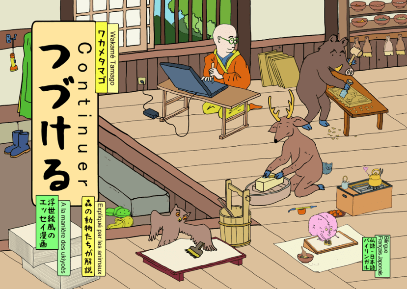 Wakamé Tamago décide de faire une nouvelle BD et se lance dans des dessins dans le style des gravures ukiyoé. Suivant les bons conseils de son épouse il demande aux animaux de la forêt de l’aider.