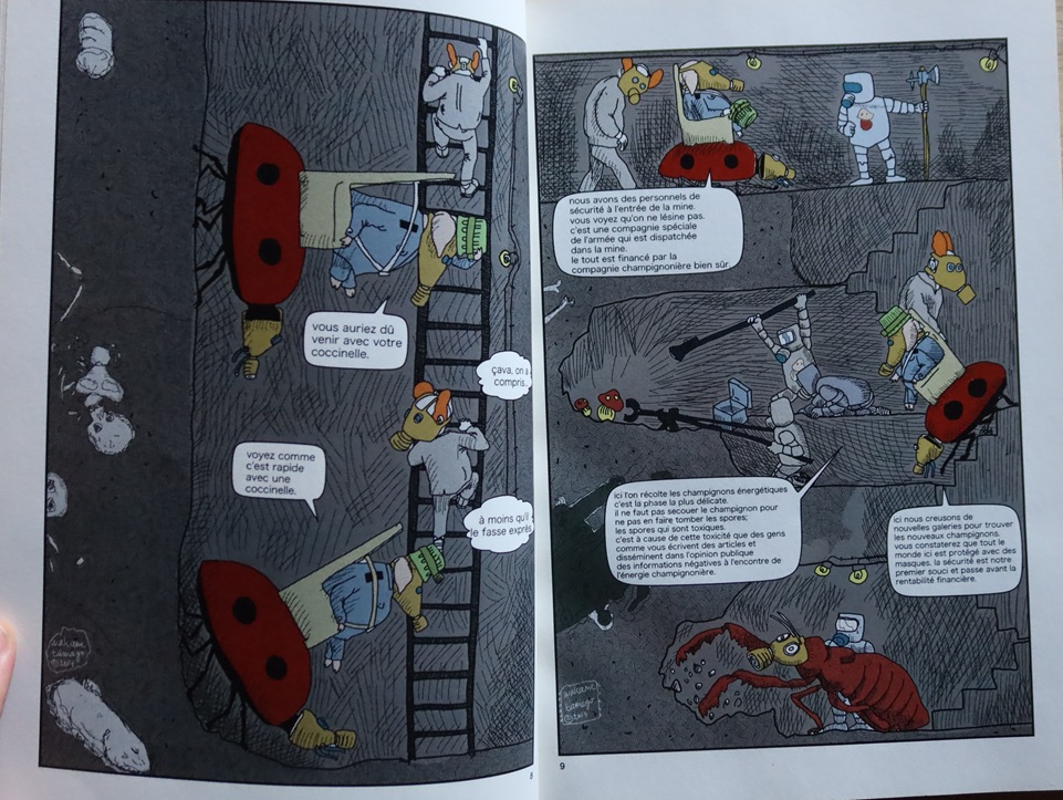 Dans une ville futuristico-médiévale habitée par des insectes géants, la société est strictement hiérarchisée: dominée par des rats au sommet, les cochons occupent les classes moyennes, les humains sont en bas de l’échelle. La vie y est paisible et prospère jusqu’à ce qu’un accident dans une centrale champignonière bouleverse les vies des trois protagonistes: le paysan; le journaliste et l’ingénieur (l’ingénieur est un cochon).