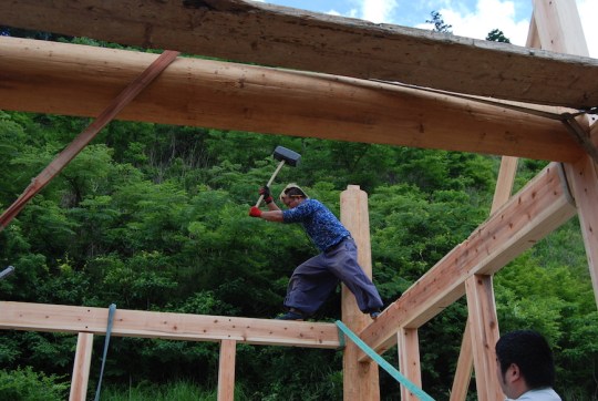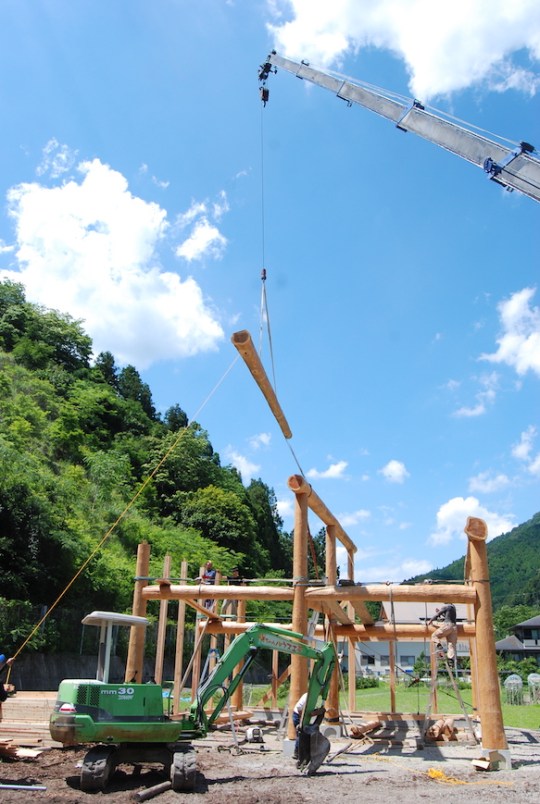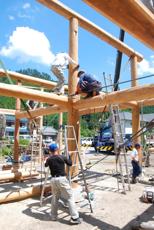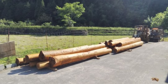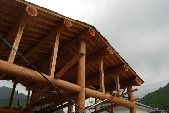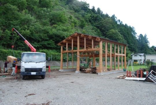 En 2019 S. charpentier du village a construit un garage pour le syndicat des exploitants forestiers, en utilisant les cryptomères pris dans notre vallée. J’ai suivi le progrès des travaux, de la préparation des pièces de bois à la construction de l’édifice.