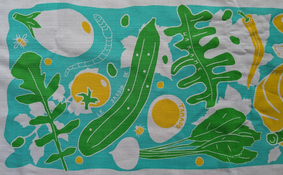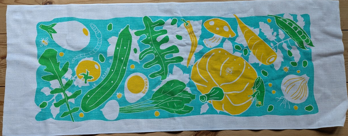 La serviette « Tenugui » Wakamé Tamago, motif d algues et d oeufs durs (mon pseudo signifie Algue – Oeuf)