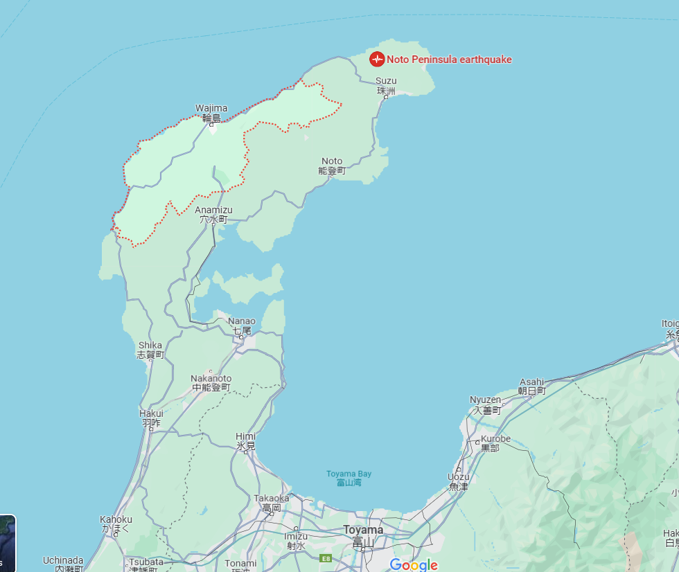 Le 1er janvier un énorme tremblement de terre, suivi d’un tsunami a dévasté une partie de la péninsule de Noto (sur la côte nord, qui donne sur la Mer du Japon).