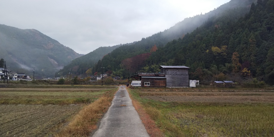 Dans la vallée, pour la plupart des rizières, le riz a été récolté. En fonction de la variété du riz le moment de la récolte varie et le delta peut faire jusqu’à un bon mois. Plus au sud d’ailleurs je vois des rizières pas encore récoltées. Peut être le riz utilisé pour faire du saké ? Faudra que je me renseigne là dessus.