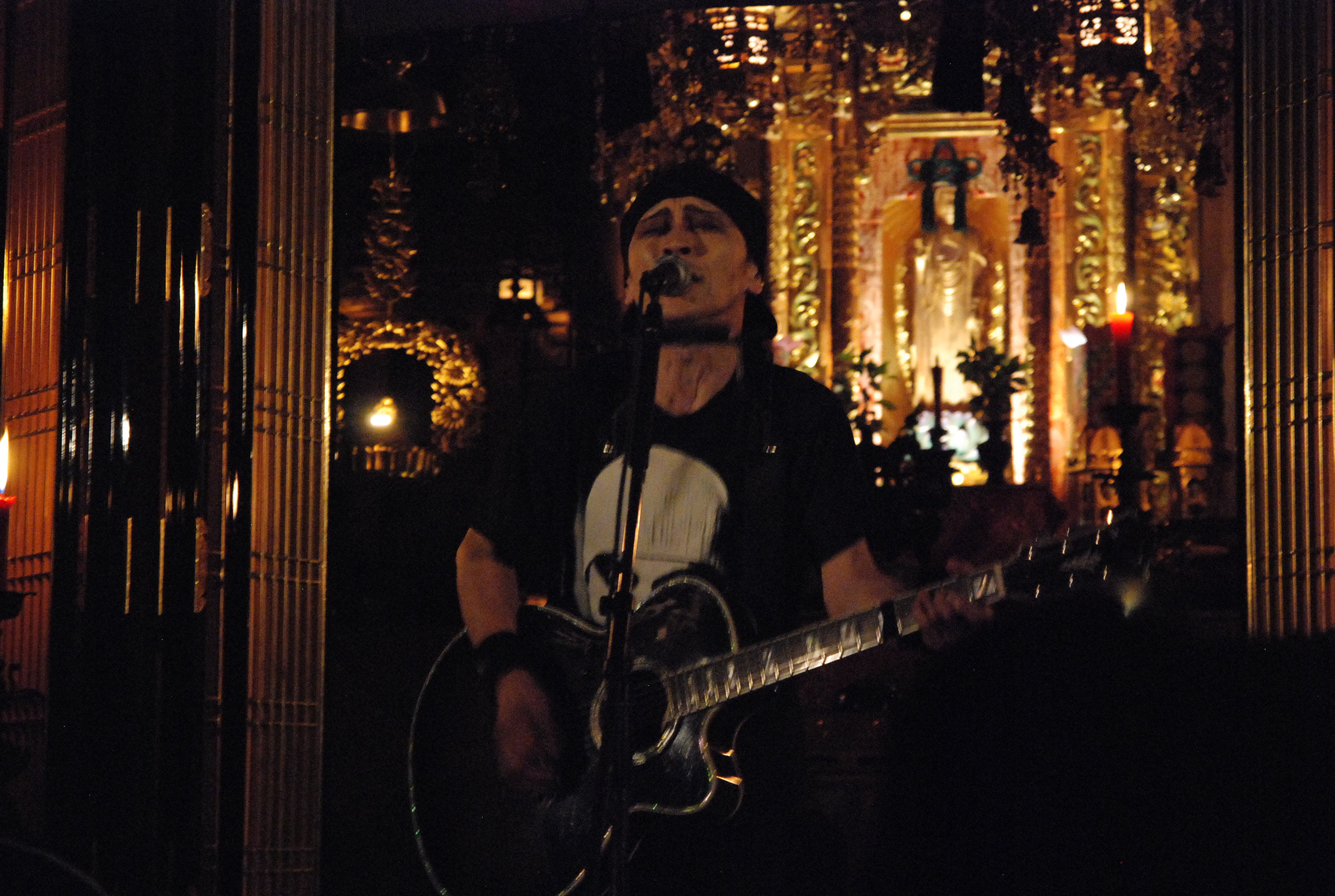 En effet. A l’invitation du temple bouddhiste du village; Endou Michirou est venu se produire en concert. Le concert a eu lieu dans le temple. Michirou; harmonica, guitare, et sa voix a tout donné. Ses belles chansons puissantes; sur la révolte; le sexe; la liberté et la souffrance.