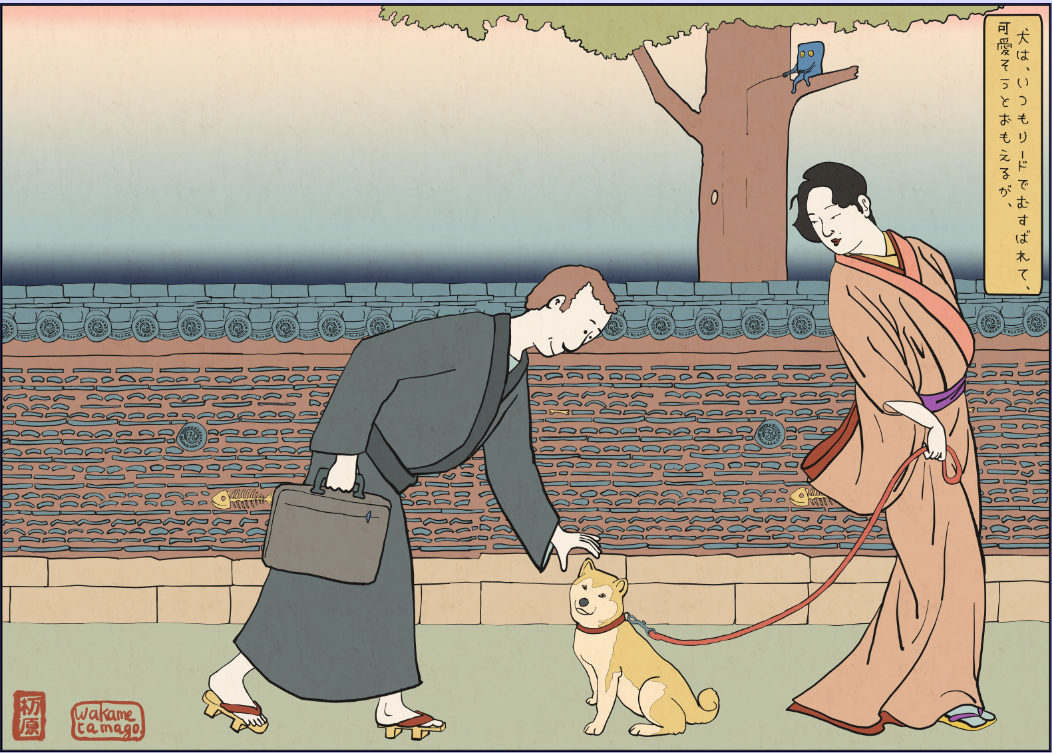 De tout cela j’ai fait un petit dessin. Je continue dans ma série de dessins, de style ukiyoé.