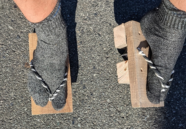 Le résultat est pas mal !!! Je fais le tour du quartier pour tester ces gétas et franchement c’est très bien… En plus il y a ce bruit sympathique du bois qui frappe le bitume ça a vraiment du style !!! Beaucoup mieux que des crocs à la con !