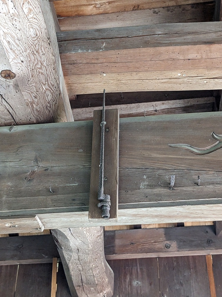 Sur la poutre à droite; une baïonnette. Je pense que c’est le modèle utilisé lors de la guerre Russo Japonaise, par l’armée Russe….