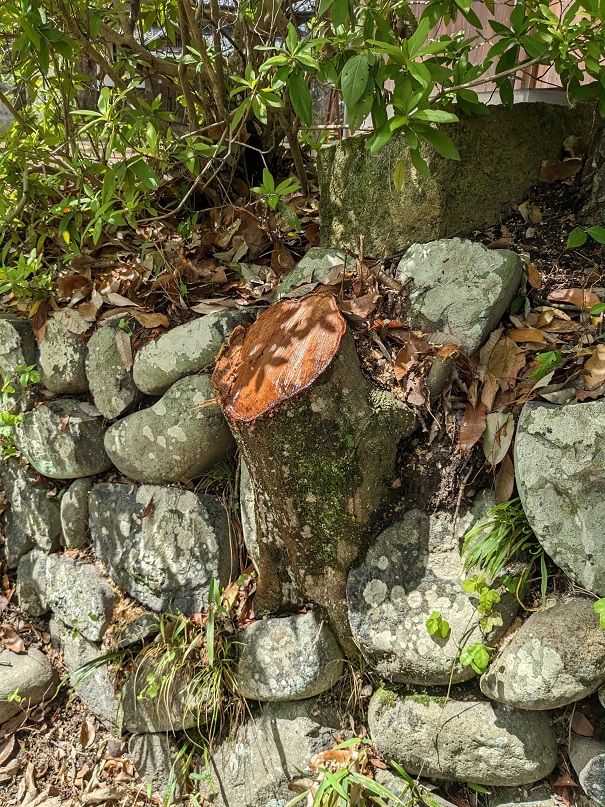 Mmmm Saki chan est passé par la avec sa tronçonneuse … et ce tronc d’arbre je l’ai bien vu … dans mon jardin !!!