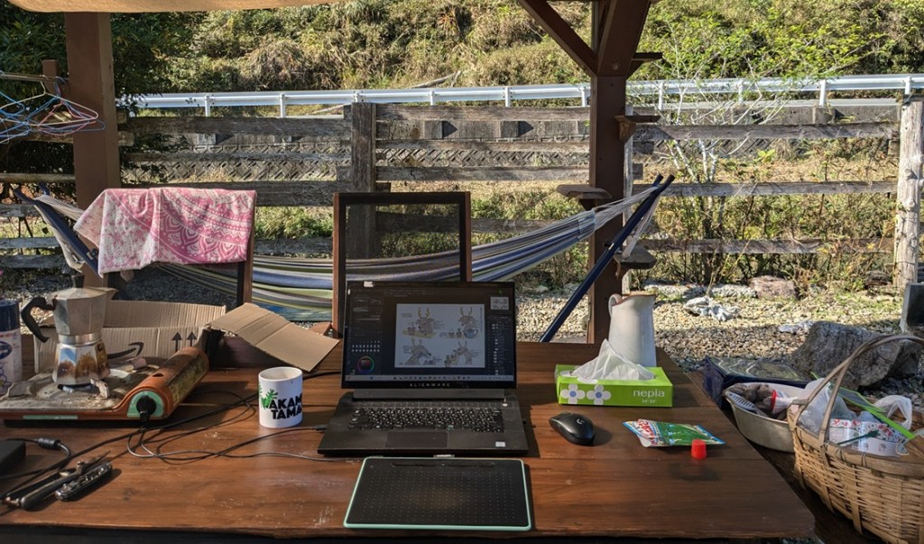A chaque nouvelle page finie, je vais l’imprimer et je la mets dans un classeur. Cela me permet de me motiver. Pour imprimer les dessins je vais au convenience store du village. C’est une petite routine que je suis ainsi et je sais que ça m’aide à me motiver.