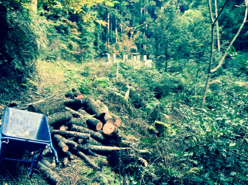 Là, un immense cerisier est effondré. Des ronces et la jungle un peu partout.