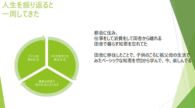 A partir de la dans la présentation je décris comment nous nous sommes installés au village, petit village au nord de Himeji et les slides s’appuient beaucoup sur la bande dessinée …