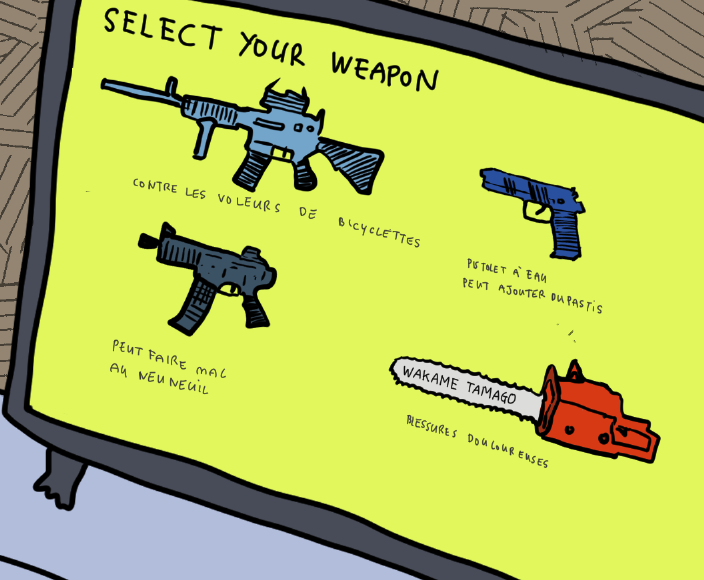 A propos; il y a des petits détails dans la BD qui sont si petits qu’ils n’apparaissent pas à l’impresssion. Comme ici; avec les descriptions des armes et mon pseudo sur la tronço.