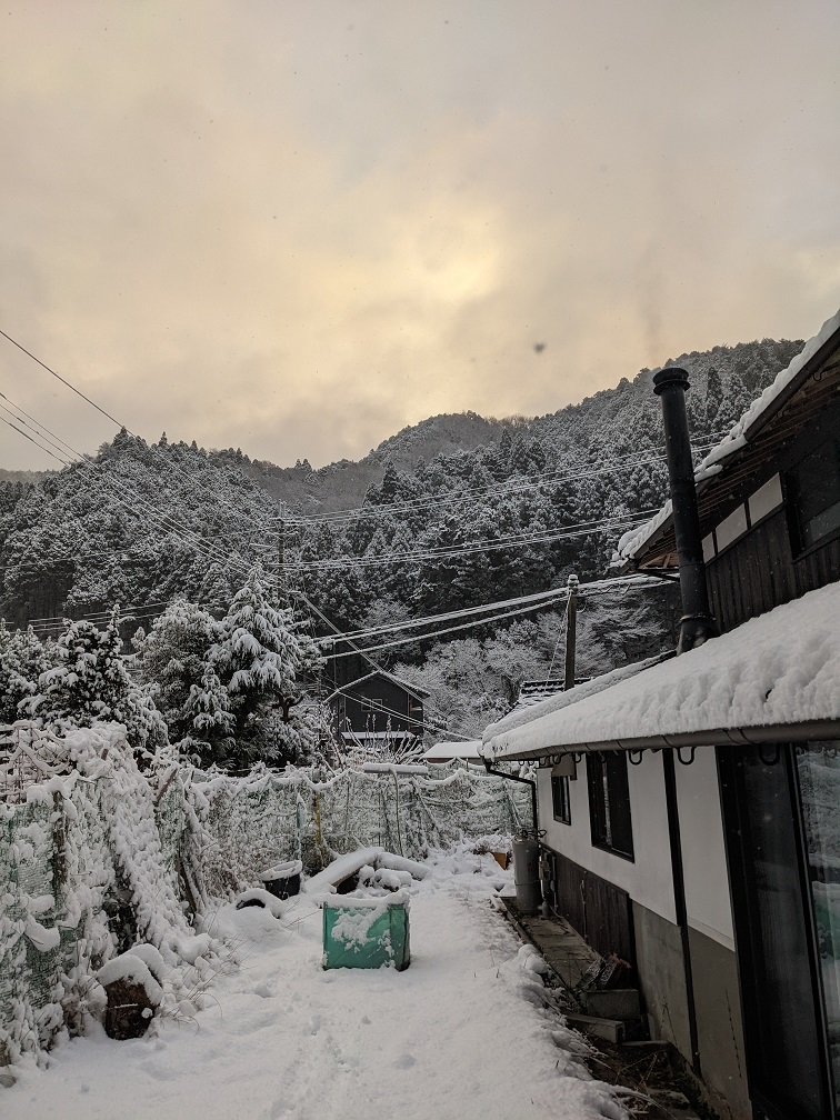 Cette fois ci j’ai fait un civet de chevreuil… Très marrant … au milieu des préparations mon ami Sakichan passe avec son chien … on discute et puis ensuite mon épouse revient du travail … on commence à faire griller des champignons shiitakés et réchauffer du saké …. Le irori se transforme une izakaya !!!