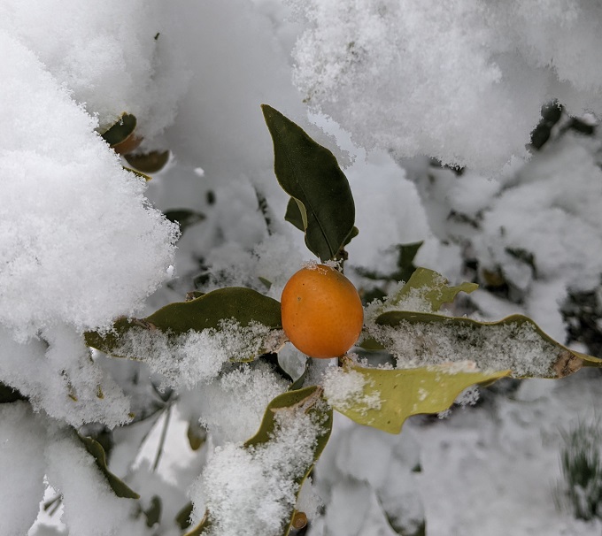 Samedi matin. Il a neigé pendant la nuit et tout est blanc.