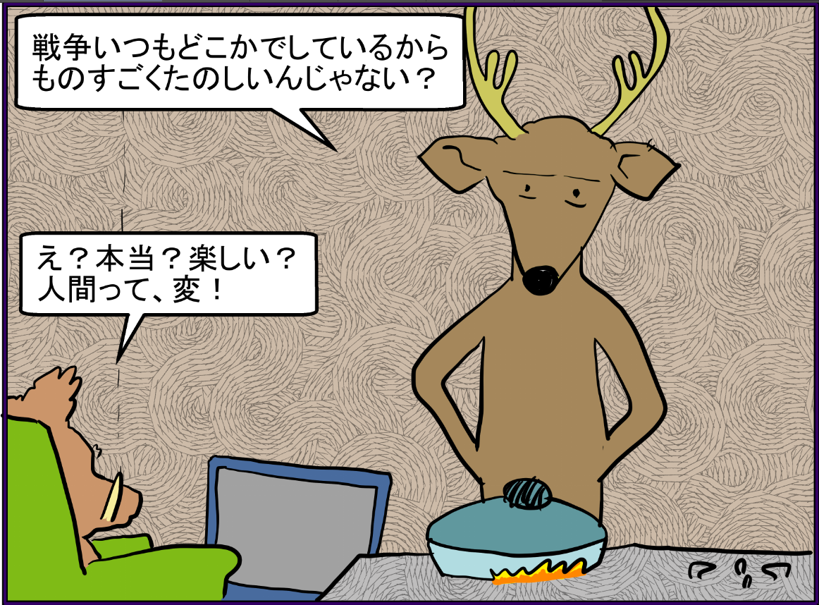 L’homme peut-il être sauvé ? 人間を救えるのか —- tel est le sujet de mon dernier dessin….
