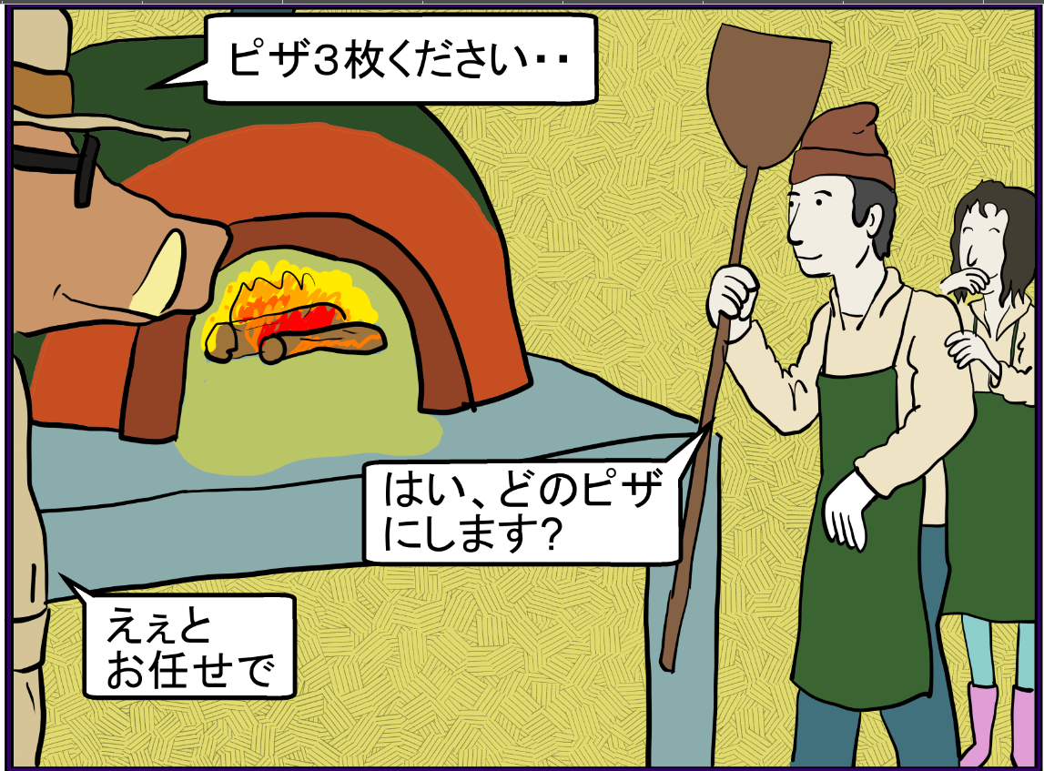 J’ai imprimé cette petit histoire et l’ai apportée à monsieur K qui tient la pizzeria.