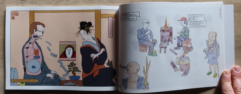 Le format par contre change; plutôt qu’un gros pavé qui prend 5 ans de travail, je vais dessiner des histoires très courtes qui tiennent en une page ou moins, style ‘4コマ’… et les publier au fil de l’eau sur mes blog (français et japonais) et instagrom…