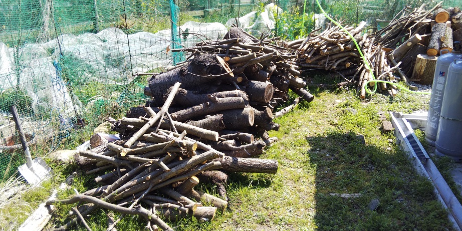 De retour au jardin il faut s’atteler à fendre le bois de camphrier. Pour les hivers prochains. C’est un bois qui vrille et donc par endroits il est excessivement difficile à fendre.