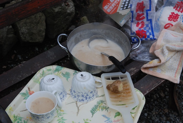 Voilà une boisson succulente; parfaite pour les guerriers fatigués. De l’amasaké avec du gingembre.
