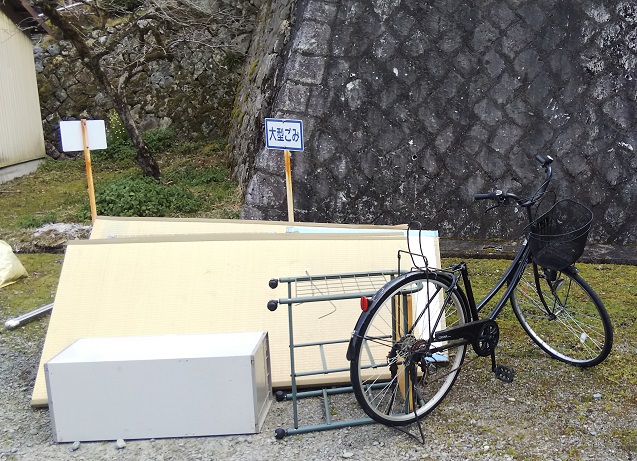 Puis je vais voir si les gars des poubelles ont bien ramassé les tatamis que j’ai laissés la veille aux encombrants, car je suis pas sûr qu’ils ramassent les tatamis … en fait ils sont pas encore passés, mais un vélo y a été jeté … et il m’a l’air en bon état, quel dommage de jeter ça … je l’embarque.