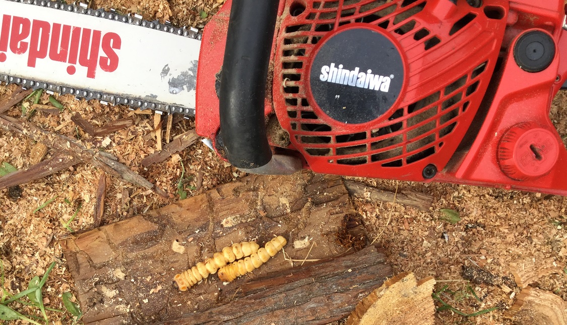 Dans le bois de marronnier ici on trouve invariablement les galeries creusées par un kamikirimushi. (capricorne). On pourrait y enfoncer le petit doigt. On trouve aussi des larves de capricorne. Je sais que certains ici au Japon les passent à la poêle avec un peu de beurre, ça un goût de noisette dit-on !