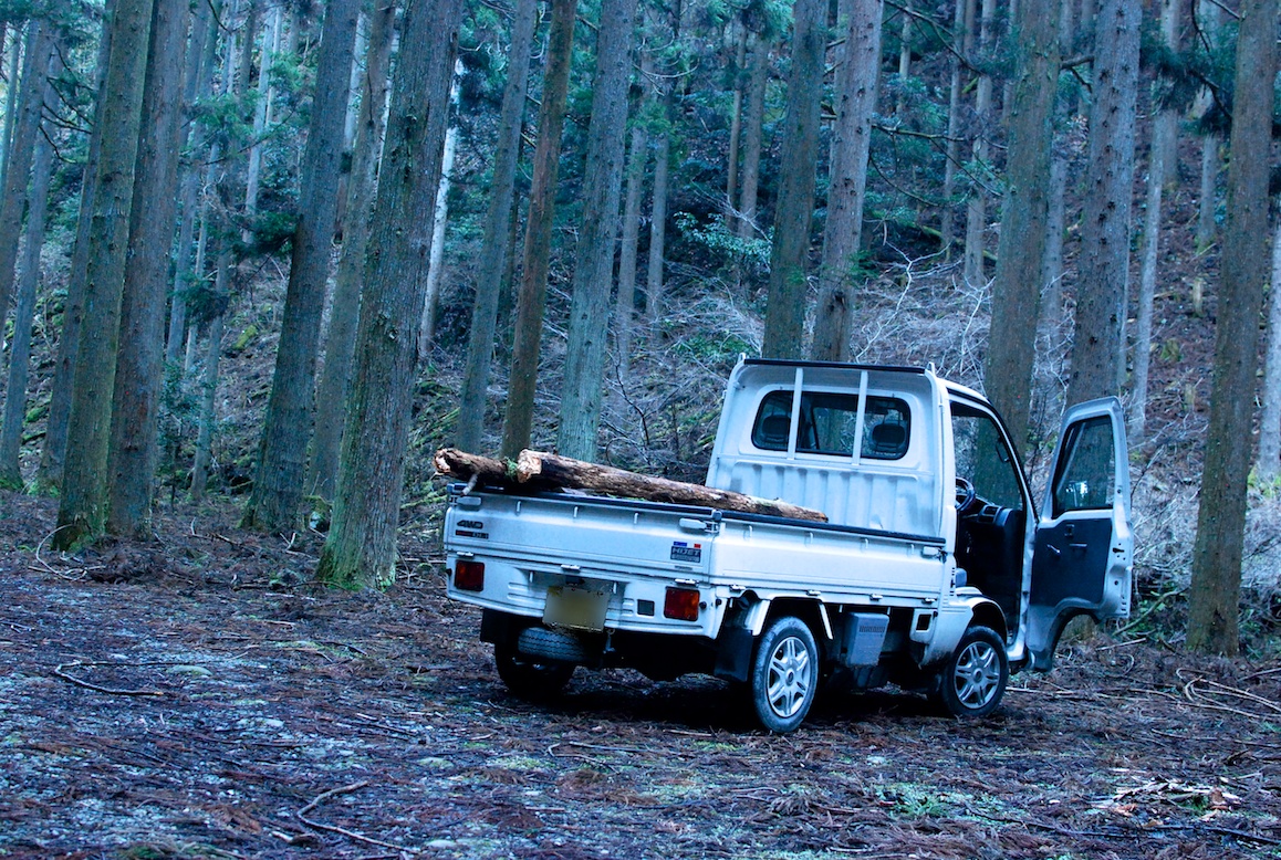 Je décide d’essayer aussi à mon tour. La journée a été bien chargée et je pars dans mon petit camion peu avant la tombée de la nuit, destination le fond de la vallée, où la route se dilue dans la montagne. J’emporte une hache et une fourche. Et le petit tour dans la nature qui s’ensuit, à peine une heure devient une petite aventure en soi. Quel plaisir que de passer ces quelques instants volés au quotidien dans la pleine nature. En forêt.