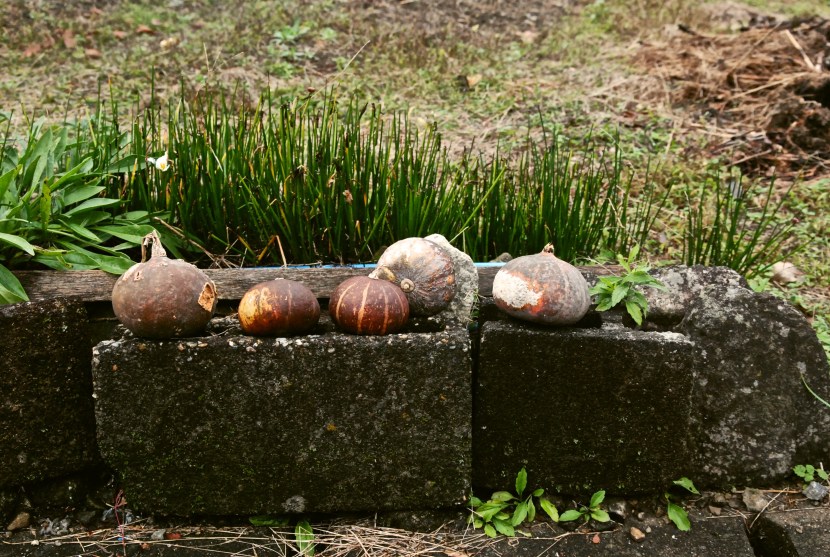 Le mur a l’âge de la maison. Il est en terre battue, apposée sur un treillis fait de bambou. De méchantes plantes de bois le protégeaient à moitié du tas de bois. Le tas de bois, mélange de branches de cyprès idéales pour commencer le feu, de vielles planches de bois, et des morceaux de pin qui avaient du servir à chauffer l’eau du bain jadis.