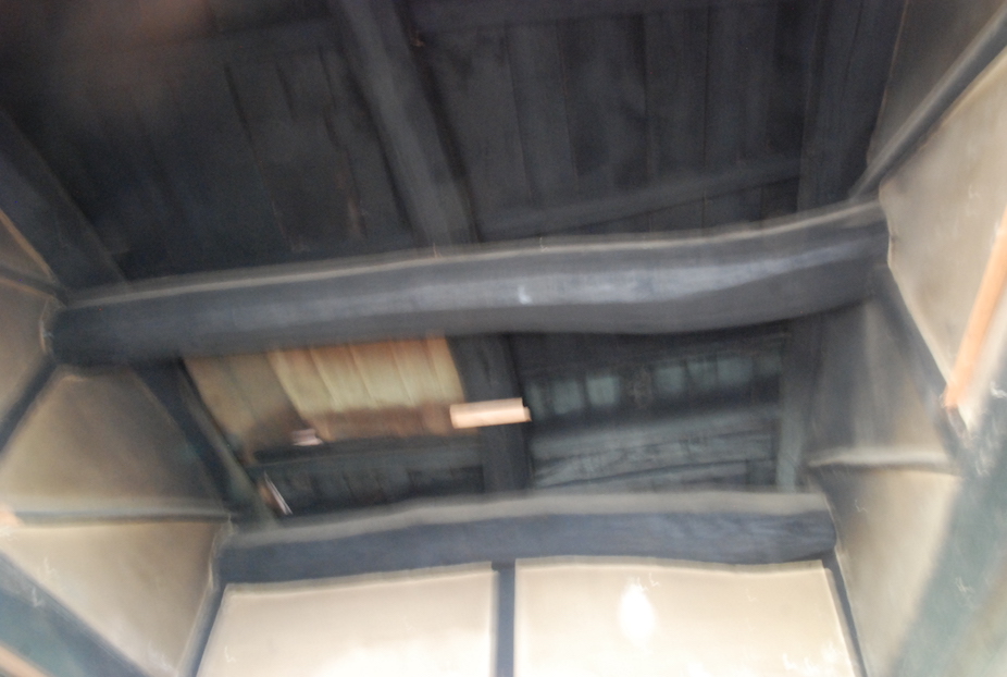La toiture a été refaite. A noter, sous la toiture métallique il y avait du chaume. (茅葺 かやぶき)Je suppose qu’il a laissé le chaume tel quel et qu’il ne l’a pas remplacé. Autrefois chaque village préservait un terrain où l’on faisait pousser les plantes nécessaires à la production du chaume; et ce pour les toitures des maisons. A savoir aussi que les plus pauvres utilisaient de la paille de blé pour leur toiture.