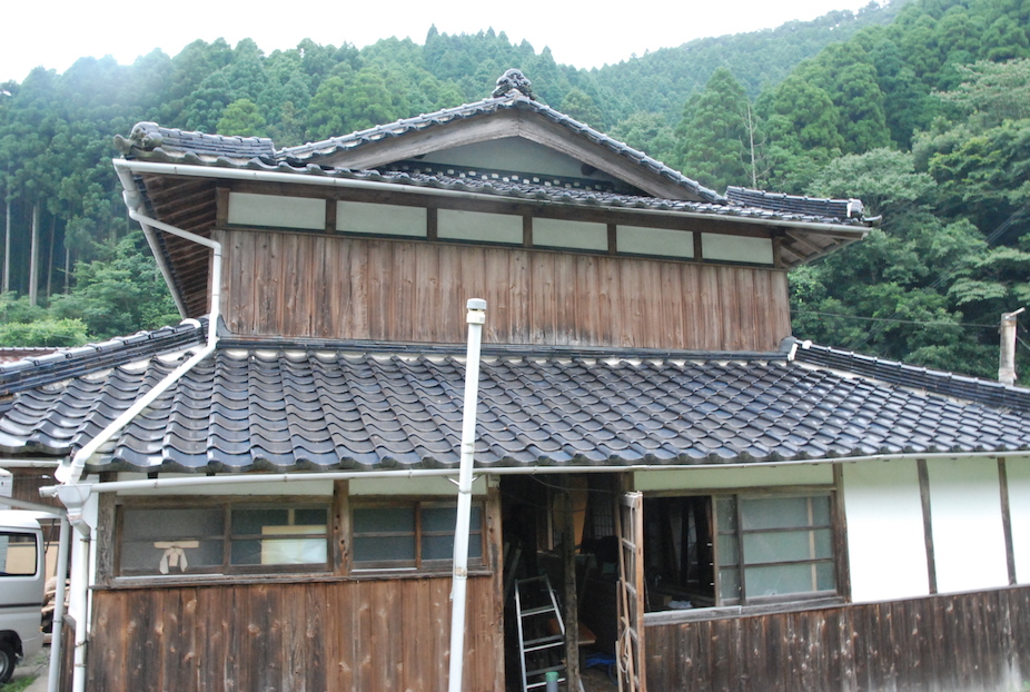 C’est une construction typique. On note que le plan original de la maison est tout comme les nôtres: 4 pièces à tatami sur la gauche, avec dans la pièce au fond orientée Sud, le tokonoma et l’emplacement de l’autel bouddhique. A droite un espace pour la cuisine et une pièce où l’on gardait une vache. Tout cet espace à droite était directement aménagé sur la terre battue, tandis que l’espace à gauche était élevé par rapport au sol, avec un plancher. Il y a 8 ans cette structure, ce plan de la maison traditionnelle japonaise ici dans la région je m’y attardais dans l’un des premiers articles de ce blog formidable. Article