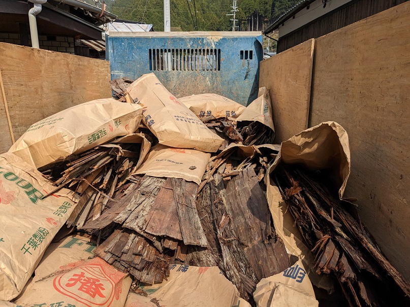 Chose intéressante à noter c’est que; sous les tuiles, il y avait une couche constituée d’écorces de cryptomère.