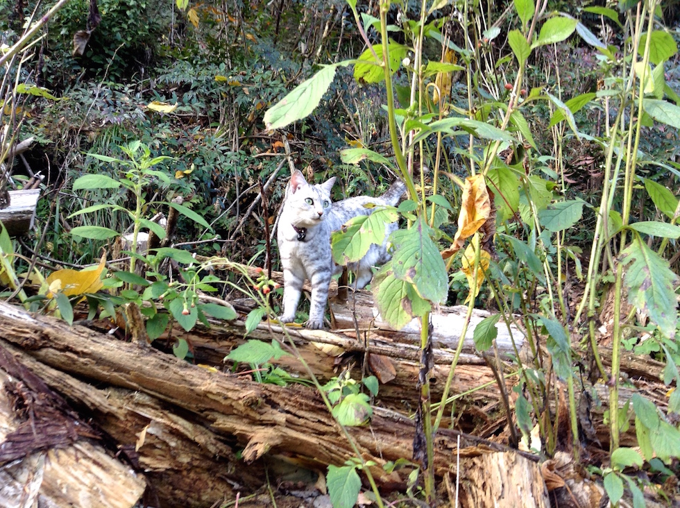 Elle dit alors à Minou: On va faire un tour dans la montagne ? 山に行く?Minou miaule de façon décidée et se met sur ses quatre pattes, racontera-t-elle plus tard. Lorsqu’elle sort de la maison, Minou court en avant et il est clair que Minou a parfaitement compris !