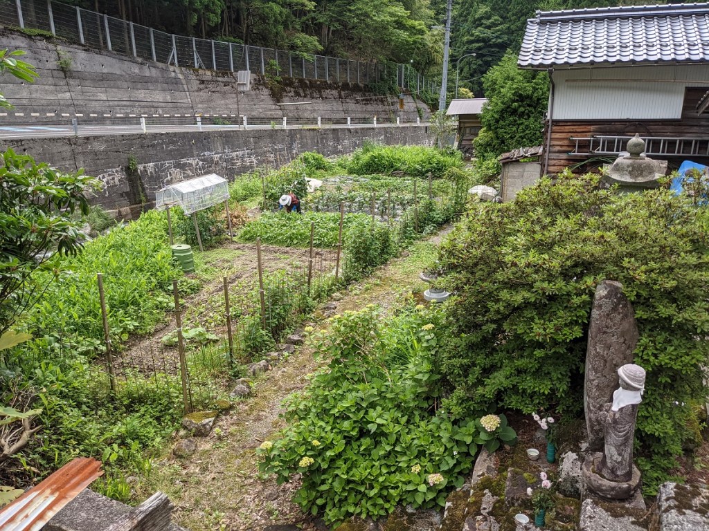 Mais je m’arrête pour admirer cette scène éternelle. Ce petit potager. Installé au pied d’un jizo. Et la vieille paysanne qui sous le regard protecteur de celui ci œuvre en silence.