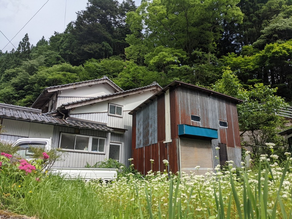 Au dessus on distingue une bâtisse très modeste qui ressemble à un garage où l’on garde un motoculteur.