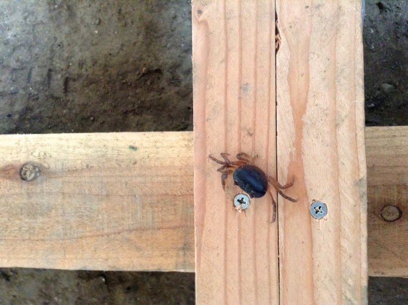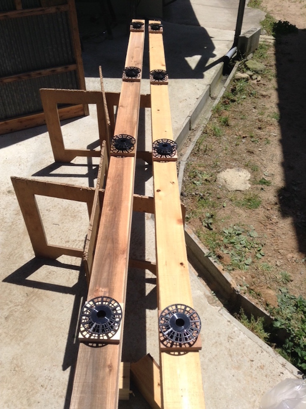 Et assemblé deux paires de pieds. Des poutres de cryptomère de 9 centimètre de côté, que l’on trouve partout chez les monsieur bricolage du coin.
