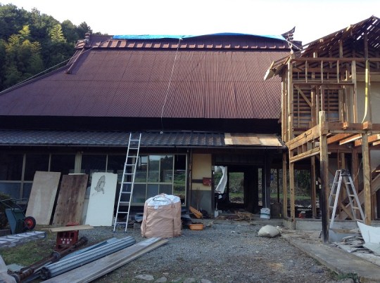 La toiture a été refaite. A noter, sous la toiture métallique il y avait du chaume. (茅葺 かやぶき)Je suppose qu’il a laissé le chaume tel quel et qu’il ne l’a pas remplacé. Autrefois chaque village préservait un terrain où l’on faisait pousser les plantes nécessaires à la production du chaume; et ce pour les toitures des maisons. A savoir aussi que les plus pauvres utilisaient de la paille de blé pour leur toiture.