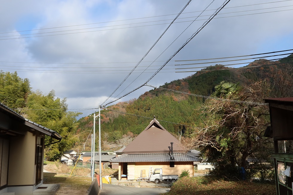 La semaine dernière je me suis offert une belle balade à pied; histoire de marcher vers le sud, vers l’entrée de notre vallée à sept kilomètres, pour y acheter une bouteille de saké. En chemin je suis passé devant la maison en travaux et coup de bol monsieur T y était et m’a très aimablement invité à venir voir à l’intérieur, pas besoin de dire que je ne me suis pas fait prier.