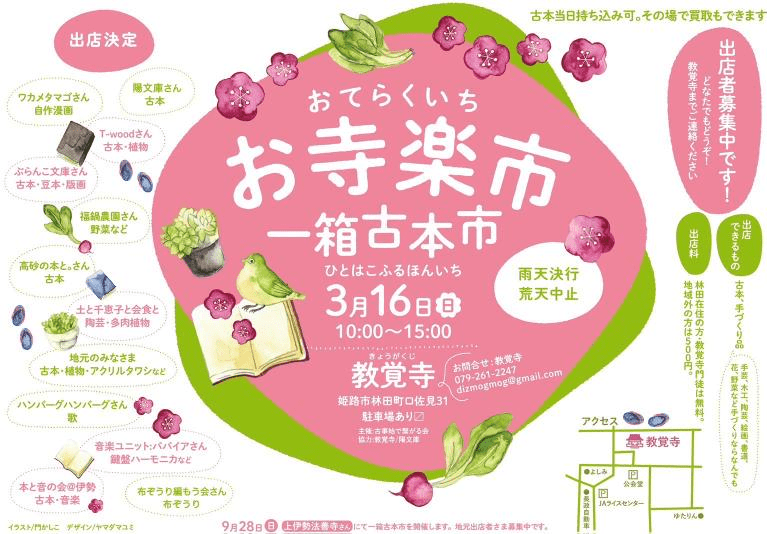 Le 16 Mars le dimanche dans un temple bouddhiste au nord de Himeji, dans la bourgade de Hayashida, il y aura un petit marché (est-ce-que le mot marché s’applique vraiment dans ce cas) avec des libraires indépendants et des collectionneurs de livres.