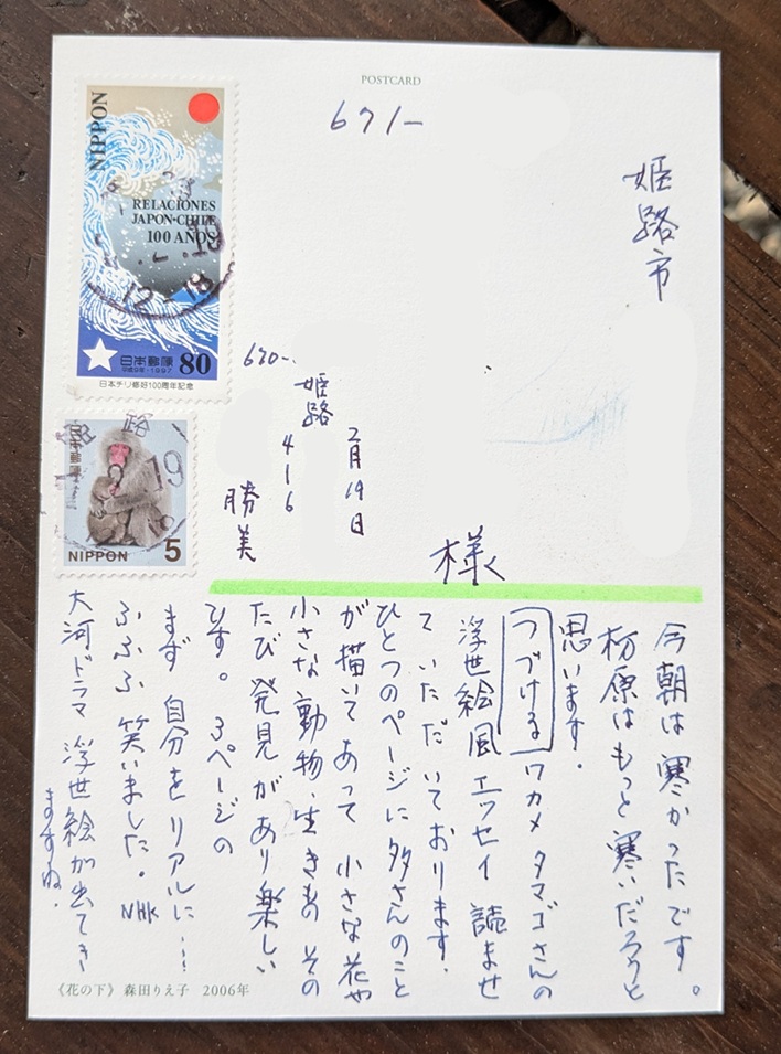 Un énorme surprise c’est lorsqu’une dame très élégante est venue, m’a dit bonjour wakamé tamago et m’a donné un sac avec du café et du chocolat, et puis elle est repartie comme elle était venue. J’ai été bien gêné, car je n’avais pas pu la reconnaitre, et étais dans l’incapacité de la remercier, jusqu’à ce que je comprenne qu’il s’agit d’une des employées du bureau de la poste du village ! (à la poste elle porte un uniforme et un masque). Quelle générosité !!