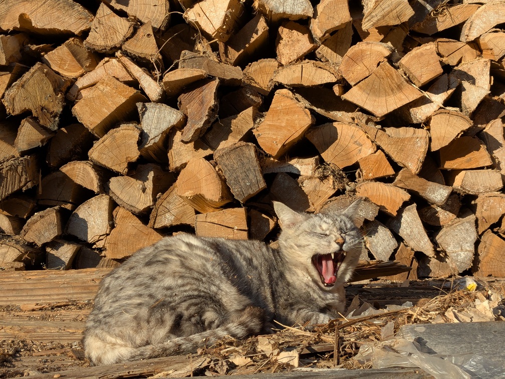 Hier j’ai reçu un coup de fil d’un ami du village pour m’informer que trois cryptomères, coupés, sont disponibles à aller chercher au bord d’un chemin, j’irai les chercher cette semaine. Il doit y en avoir pour quatre camionnées. Du bois il n’y en a jamais de trop.