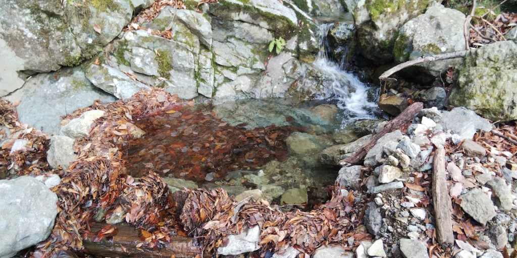 Puis une petite rivière. Un autre sanctuaire s’y trouve, à flanc de montagne. L’endroit est superbe. On s’assied sur des rochers et on fait une pause, on ferme les yeux. On en oublie les moustiques.