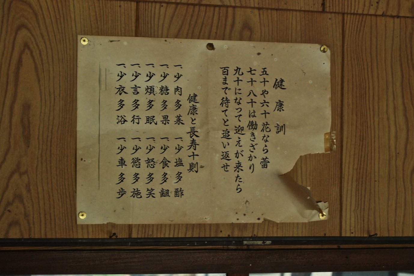 Sur un mur, un poster jauni par les années prodigue des conseils pour s’assurer une bonne santé et vivre bien et longtemps.