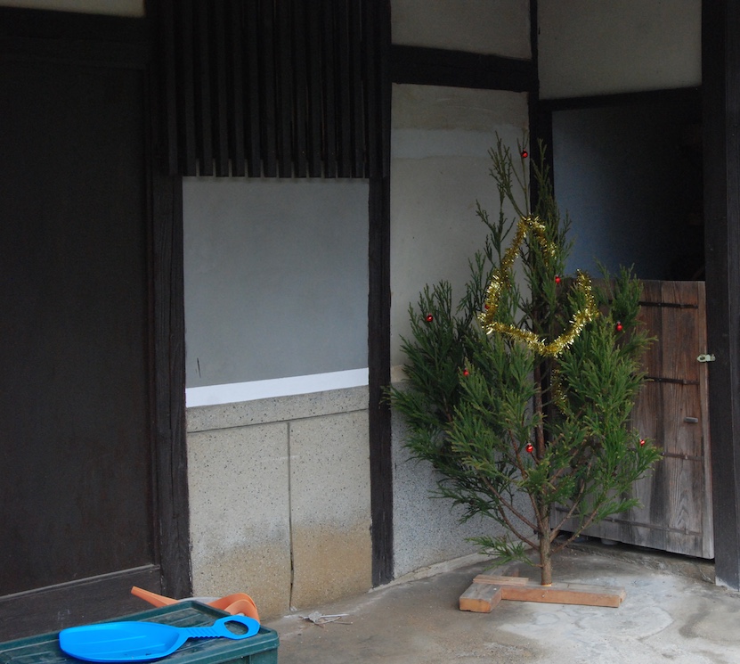 D’un des arbres abattus, je récupère la cime. Il décorera l’entrée de la maison pour les fêtes de fin d’année.